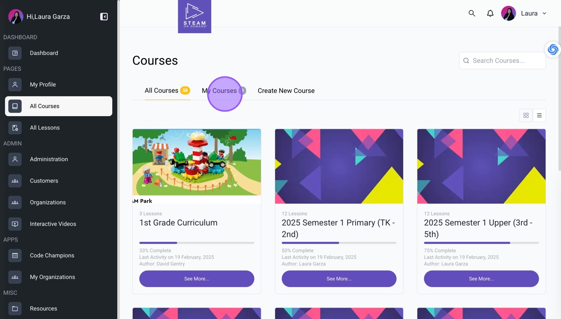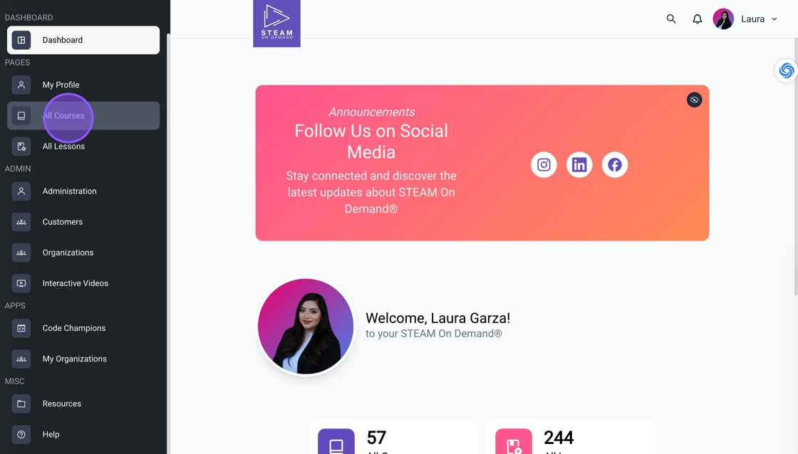 1. Click "All Courses" from the dashboard.