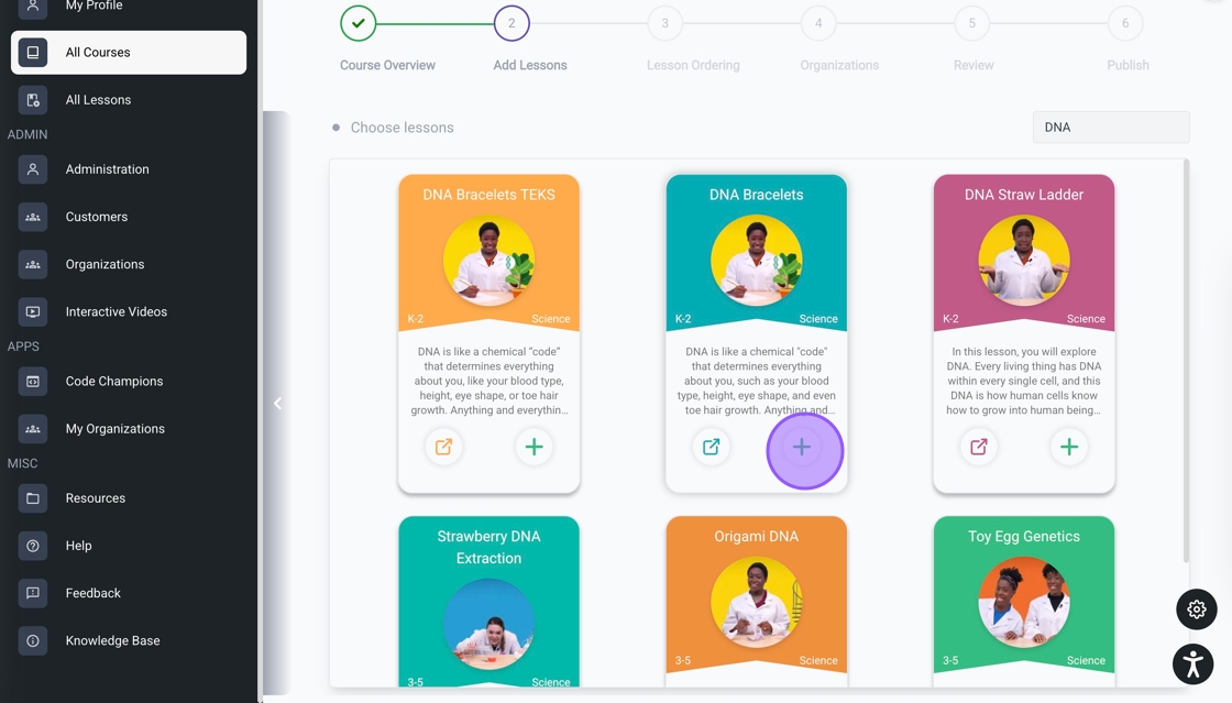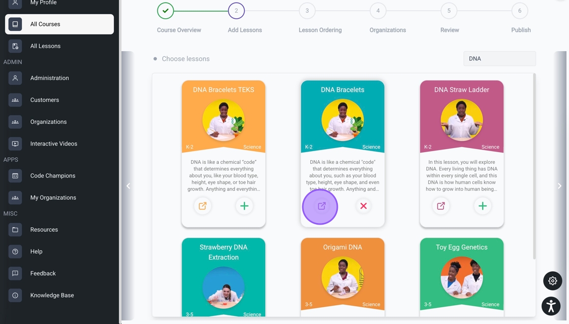 11. Click the open icon to view the lesson in a new tab. After adding your lessons, click the arrow to continue to the next step.
