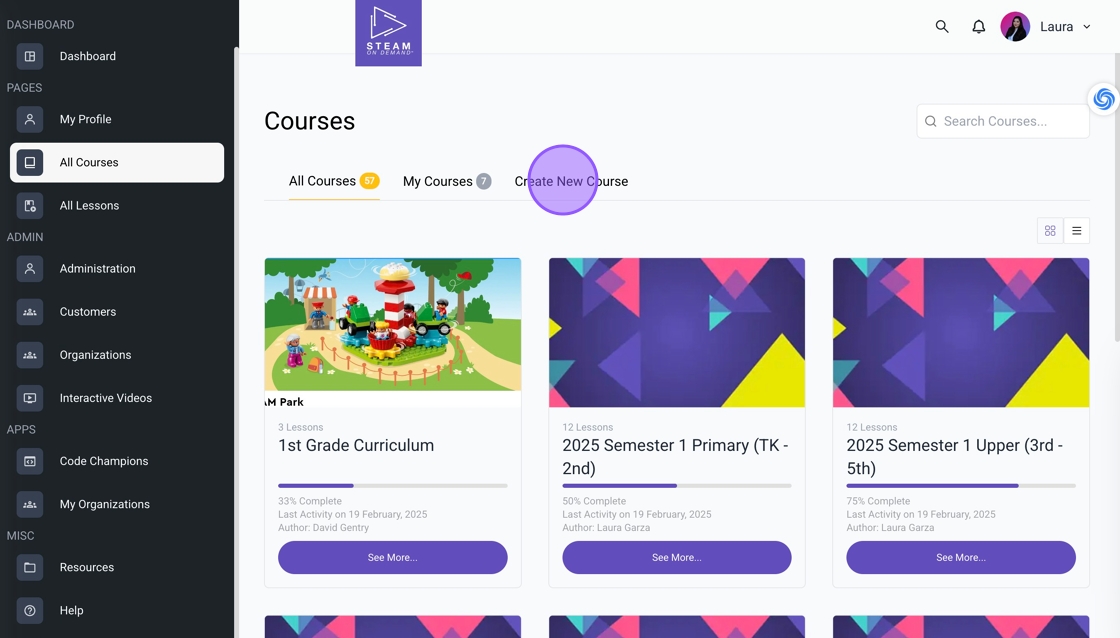 2. Click "Create New Course".