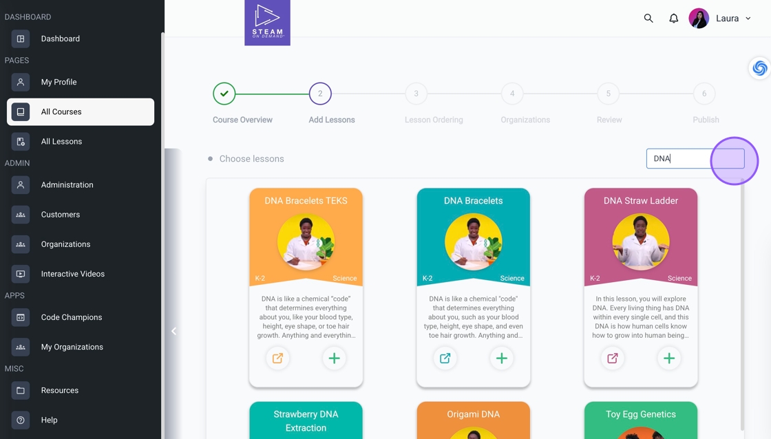 9. Click the "Search for a lesson" field to locate your lessons.