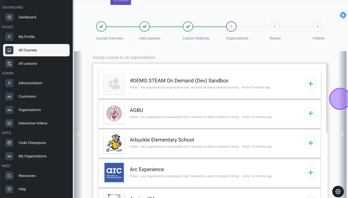 15. Assign the course to your organization if necessary, then click the arrow to continue.