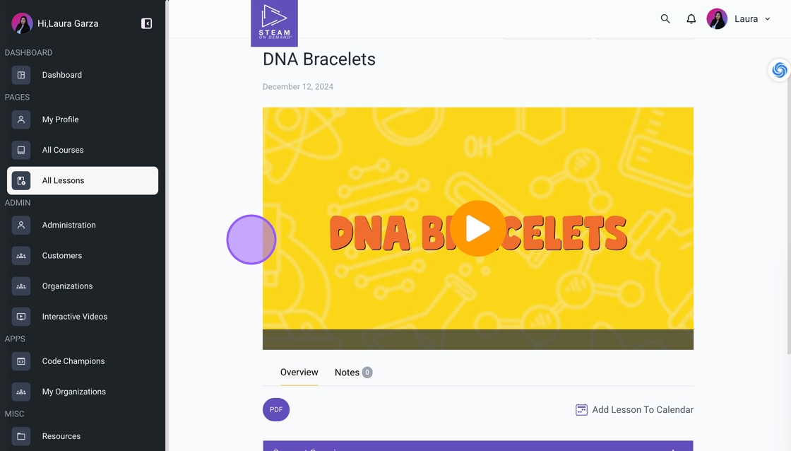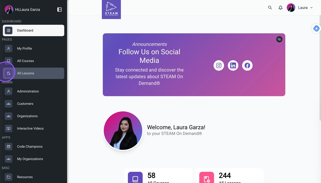 1. Click the "All Lessons" icon or select the "All Lessons" tab from the left-side menu.