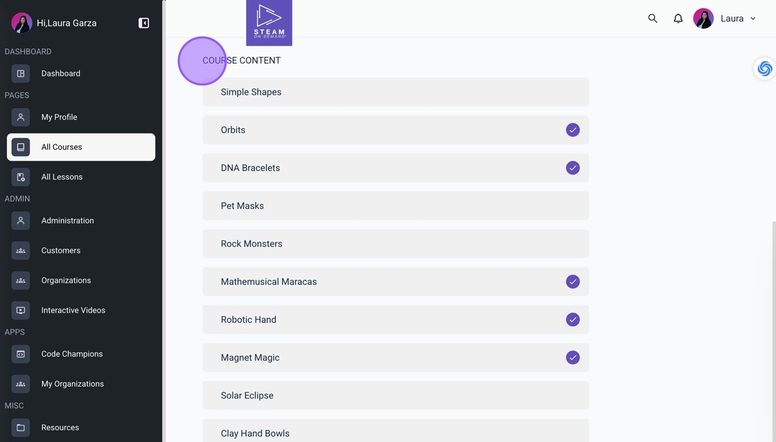 4. Each course includes 12 lessons to help structure your program. Once a lesson is completed, a checkmark will appear to track progress.