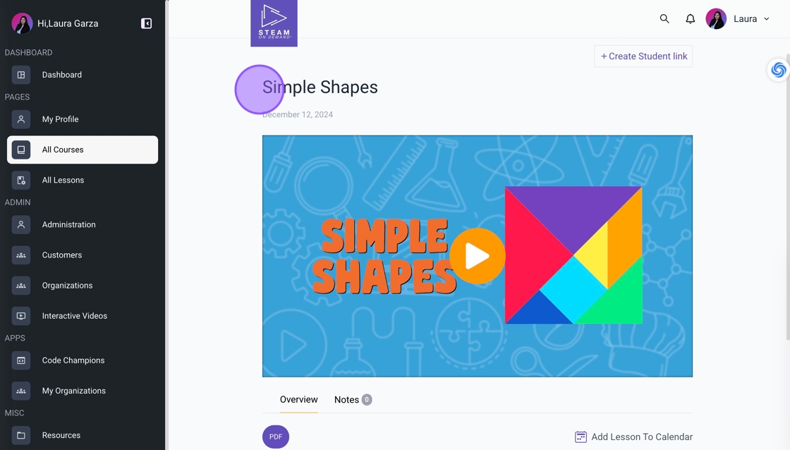 5. Click on a lesson to access the lesson video and drop-down resources.
