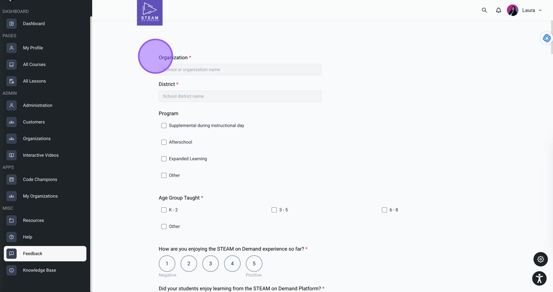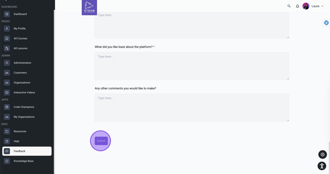 2. Fill out the form with details on what you liked, what could be improved, and any suggestions.